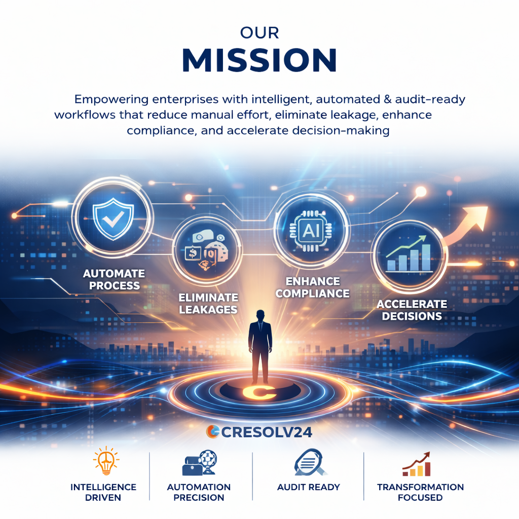 To empower enterprises with intelligent, automated, and audit-ready workflows that reduce manual effort, eliminate leakage, enhance compliance, and accelerate decision-making.